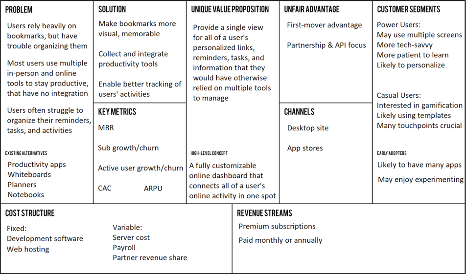 As part of the final capstone project in the Thinkful Product Management bootcamp, I sought to develop a solution for a problem I and many friends have experienced: inefficient task management and online browsing. To that end, I brainstormed potential solutions with mockups, and then conducted user research and strategic analysis, to both validate the problem and hone the solution. Finally, I developed a launch plan, including development and post-launch roadmaps, and identified the most vital KPIs for success. The result is a full-fledged product concept, ready to be executed on.